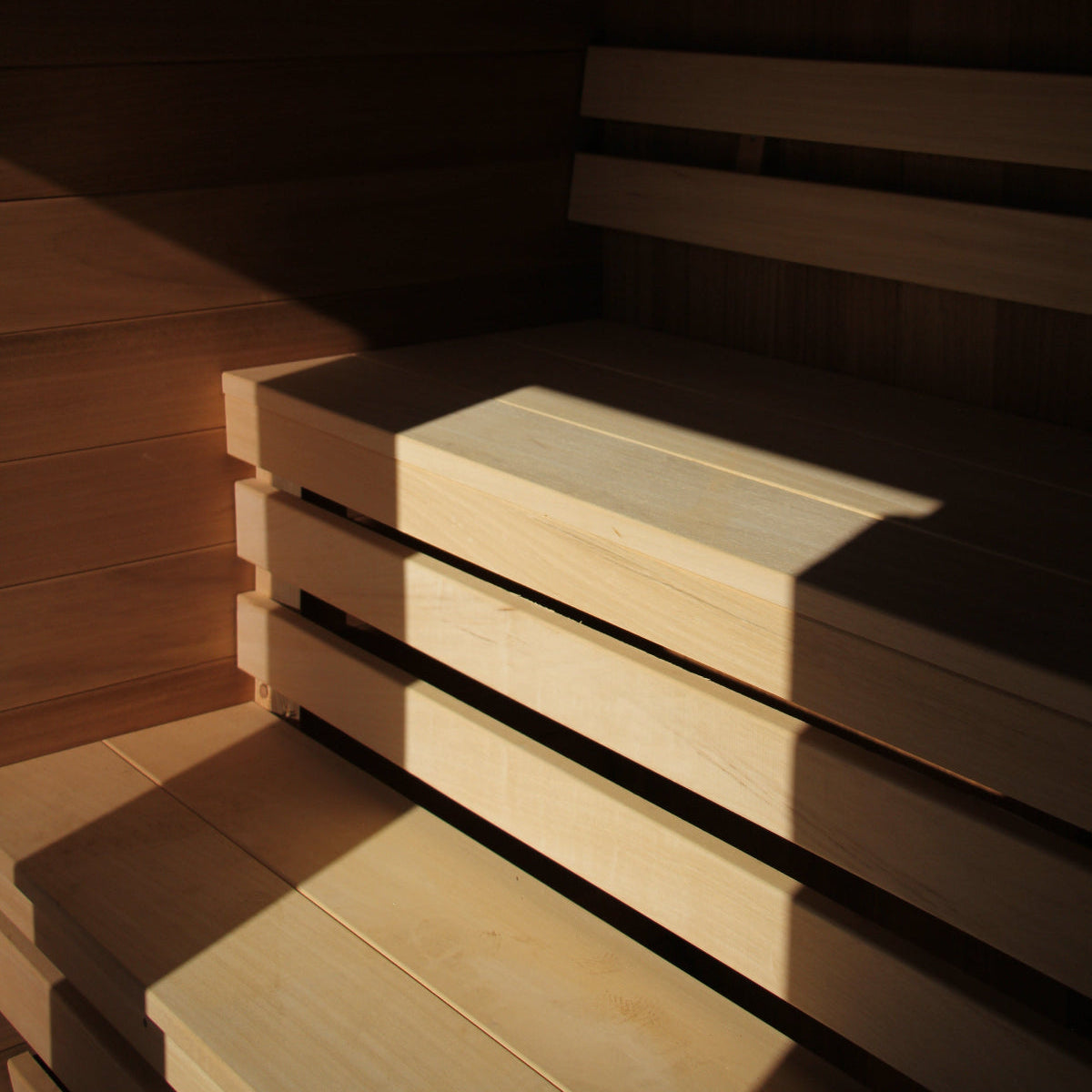 From African Ayous™ to Scandinavian Spruce™ thermowood, from sleek and compact to luxurious and spacious: you can customize your outdoor sauna entirely to your wishes with options such as a panoramic window.™